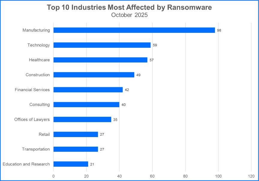Ransomware gangs may target organizations in critical infrastructure sectors, select organizations that offer services tailored to the consumer marketplace, or choose to attack organizations that fall into both categories. Understanding the trends and ramifications associated with specific industries, and how specialized services and clientele may be impacted, is crucial to assessing risks and anticipating incidents that may occur. Here are the Top 10 industries affected by ransomware groups.